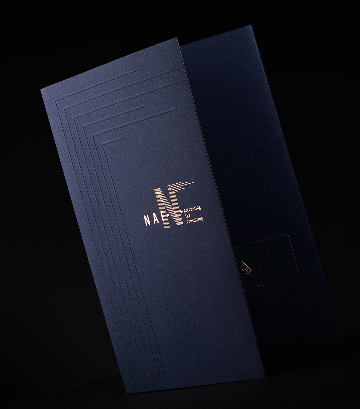 Logo and folder design for a tax and accounting office, developed with a clean and structured visual language to communicate clarity, reliability and professionalism.